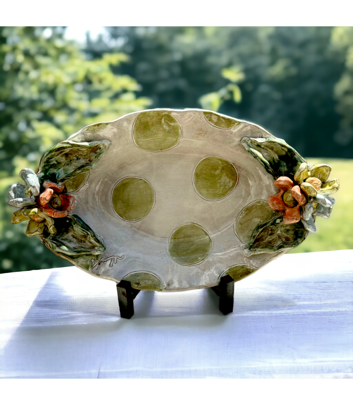 Casserole Dish w/Colorful Flowers AW w/Green Dots